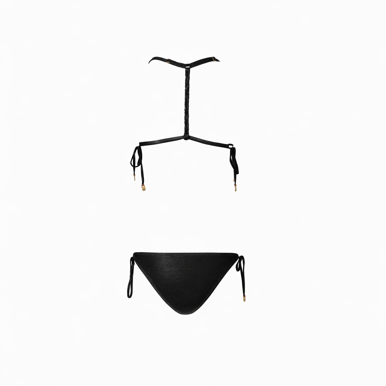 Triangle bikini with braided back deign and adjustable bottom