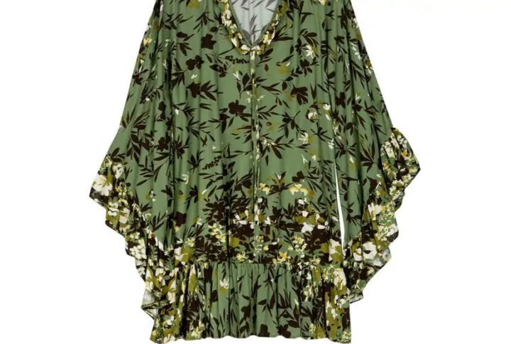 This midi kimono dress is cut from luminous viscose-blend fabric, in a wrap silhouette and a frilled, asymmetric hem that moves beautifully. Wear yours as a dress with sandals or over a swimsuit as a coverup.