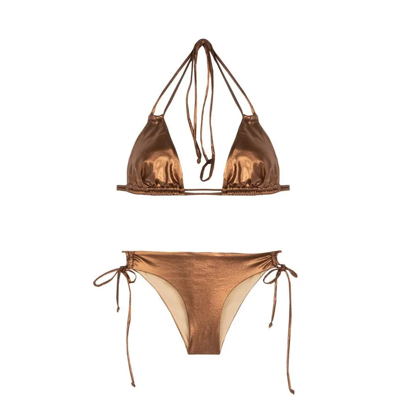 This cosmopolitan bikini is Ideal for a long day by the sea or lounging by the pool with the perfect holiday accompaniment. The triangle top & bottom feature adjustable tie neck, back and side straps to fix it safely to your liking. Particularly suitable for small and medium breasts and for creating and alluring figure.