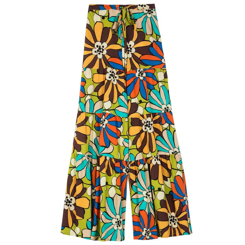 Wide leg pants inspired by the beauty of retro. With a draw-string at the waistband, it can be adjusted to your liking, proving a flattering effect on the waist and hips, while it gradually opens and ends up to extra wide legs. Kissing-floor length completes this truly vigorous style.