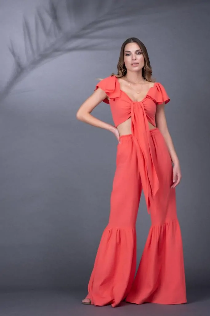 Η φούστα “Amanda”, φτιαγμένη από φίνα οργανική γάζα, διαθέτει ευέλικτη ελαστική μέση με κορδόνι, που αναδεικνύεται υπέροχα με το τοπ “Ramira” ή “Amaia”. Το ντελικάτο της σχέδιιο, σε συνδυασμό με το κλιμακωτά κυματιστό της τελείωμα, σχηματίζουν μια υπέροχη σιλουέτα.