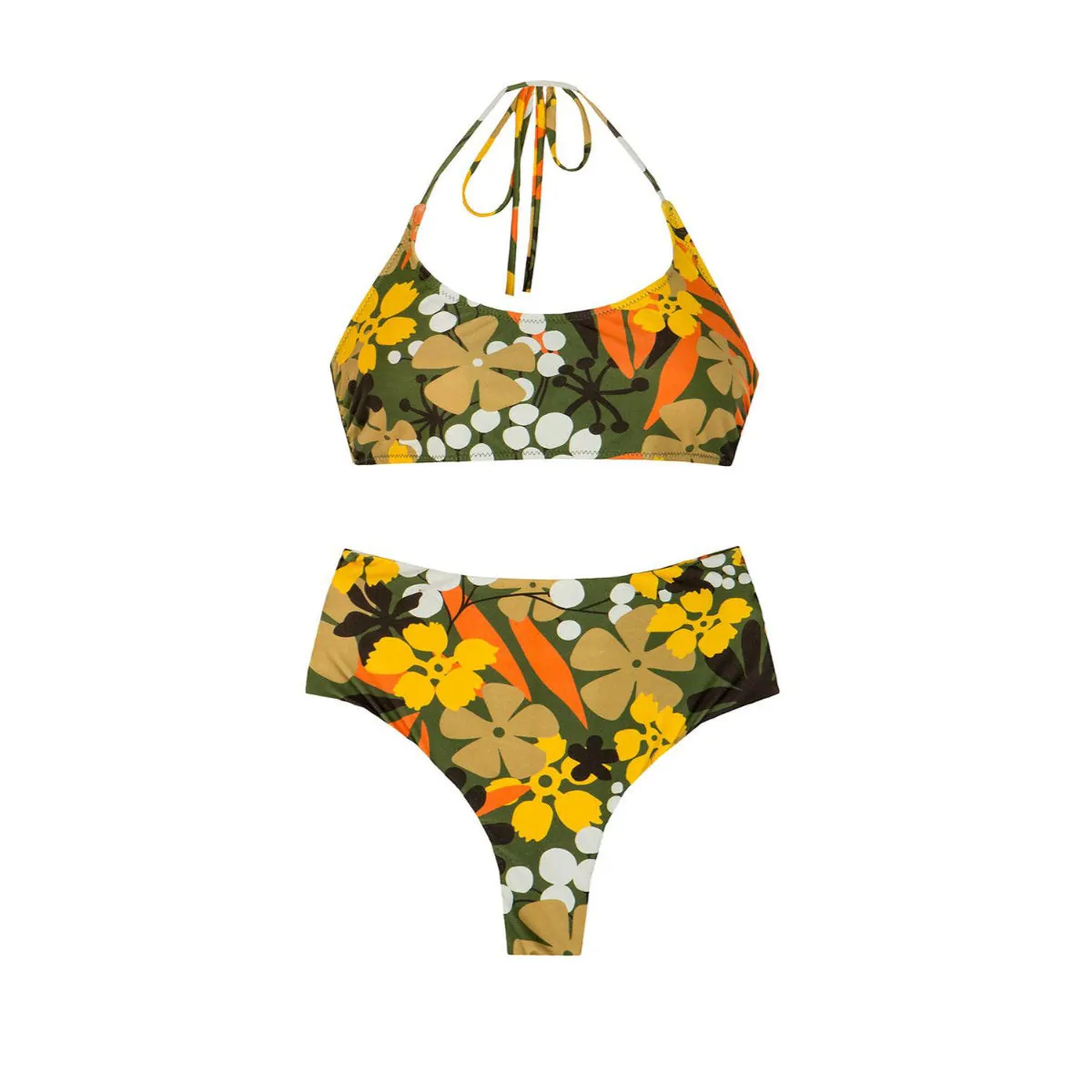 Εμπνευσμένο από την ομορφιά του ρετρό, αυτό το vintage pin-up στυλ μπικίνι θα σας κάνει να νιώσετε η θεά της παραλίας. Τοπ με εφέ τυλίγματος και παιχνιδιάρικο λαιμό, πλούσιες λωρίδες δεσίματος μπροστά και στο πλάι, σας δίνει την ελευθερία να δημιουργήσετε διαφορετικά looks, ανάλογα με την περίσταση και τη διάθεση. Το ενισχυμένο τοπ bandeau και το ψηλόμεσο σλιπ δημιουργούν την ψευδαίσθηση μιας ψηλόλιγνης σιλουέτας, προσφέροντας ταυτόχρονα μοναδική άνεση.