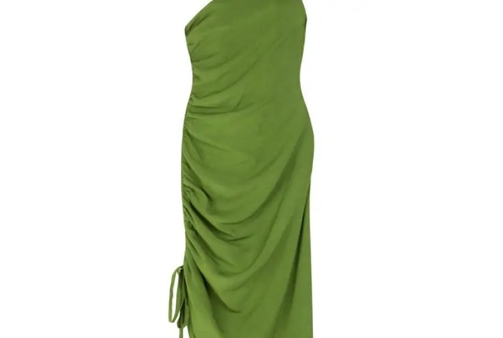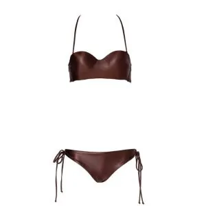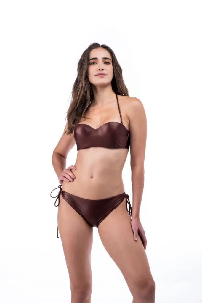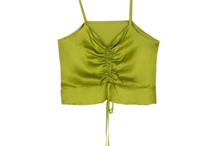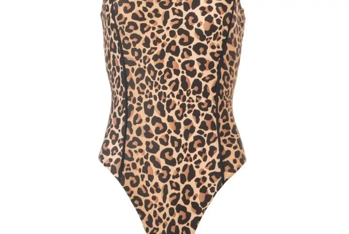 One-piece with shoulder drawstrings and wide V neckline and back