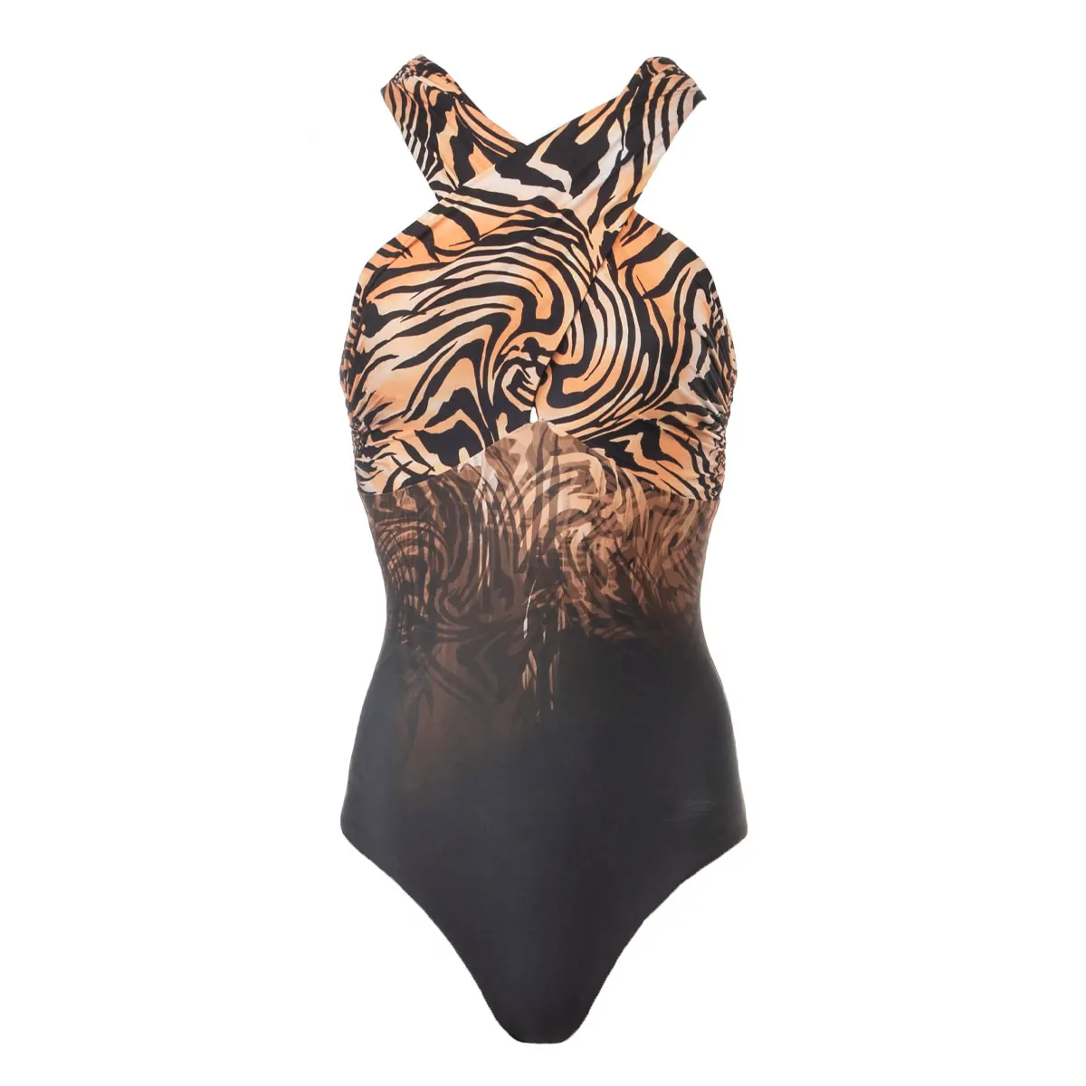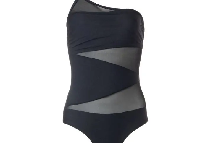 One-piece with draped design over the shoulders