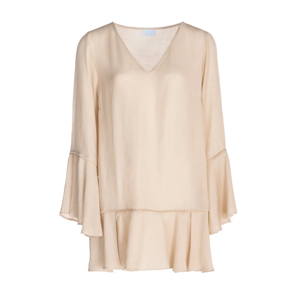 A-Line dress with pleated design at hem and sleeves.