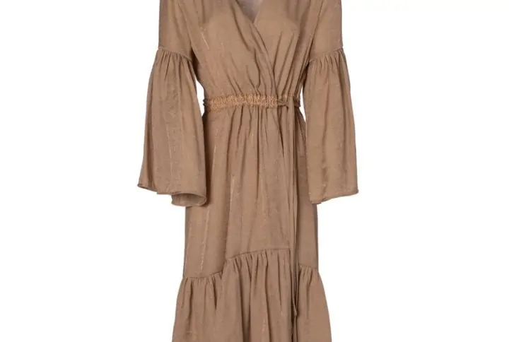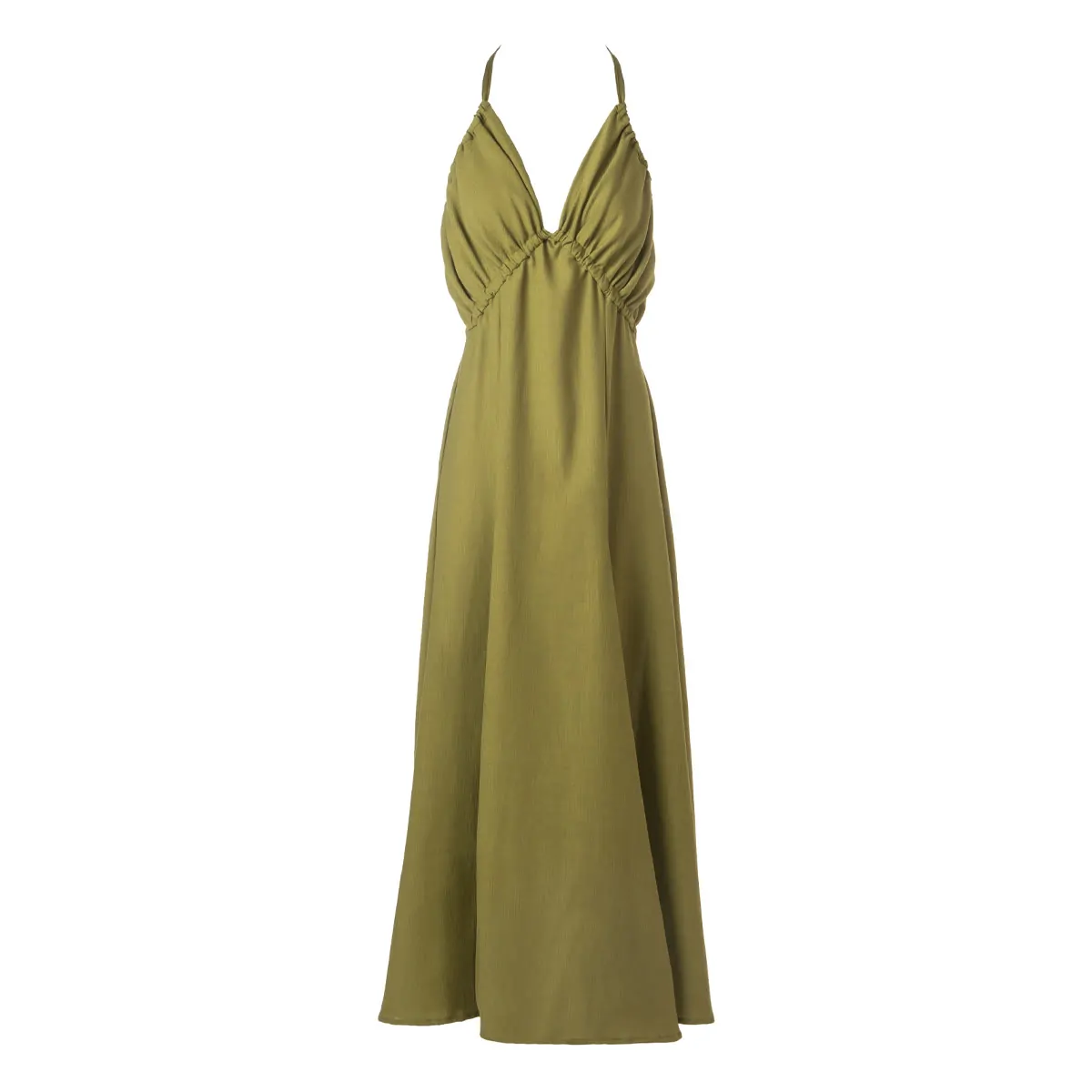 Halterneck maxi dress with gathered design, deep open back and wide skirt