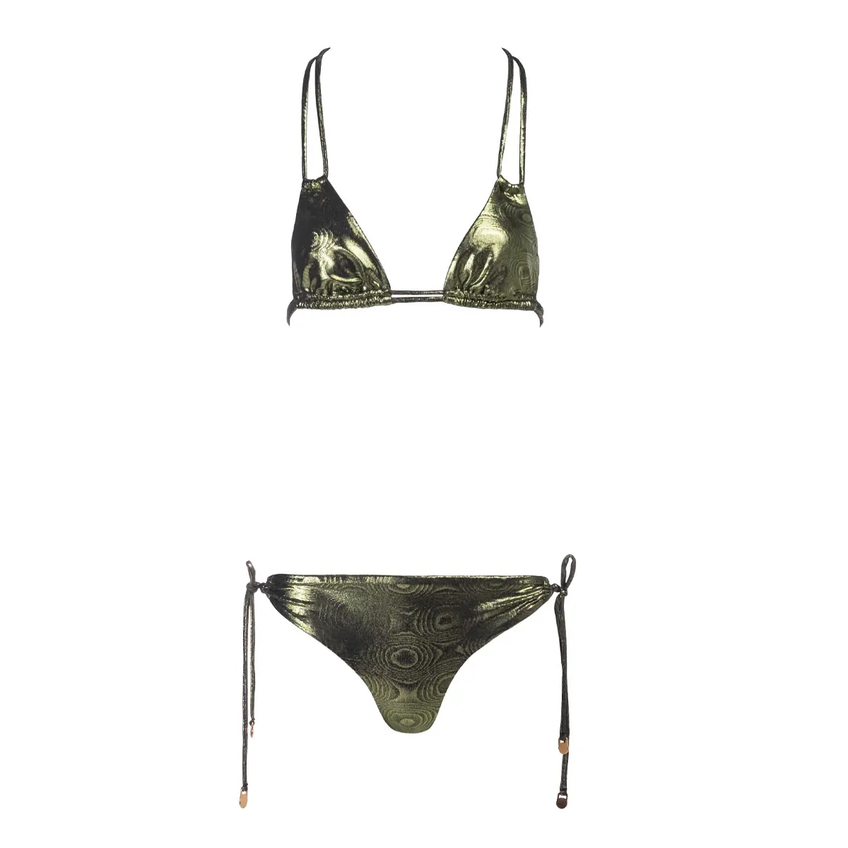 Triangle bikini with double drawstrings on top and adjustable slip