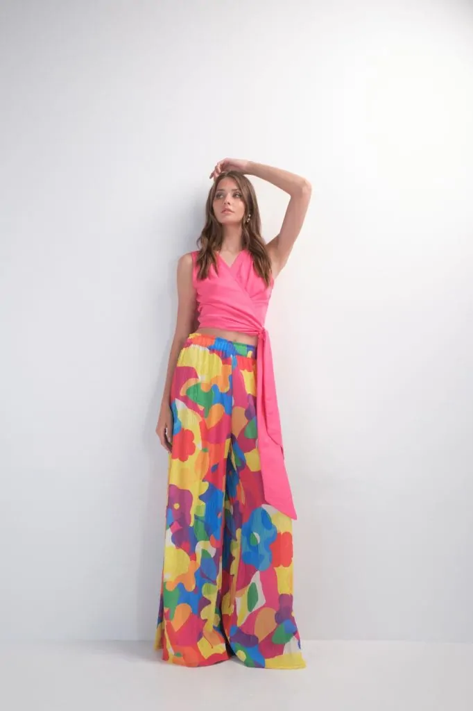 Η παντελόνα “Formentera” είναι διακοσμημένη με το signature color της σεζόν SS 2022. Φτιαγμένη από ανάλαφρο ύφασμα, ψηλόμεση με ελαστική μέση, σε φαρδιά γραμμή που καταλήγει σε καμπάνα, με σκισίματα στο πλαϊνό κάτω της μέρος, διακοσμημένα με όμορφα βολάν. Συνδύασέ το με ασορτί τοπ ή ένα απλό μονόχρωμο.
