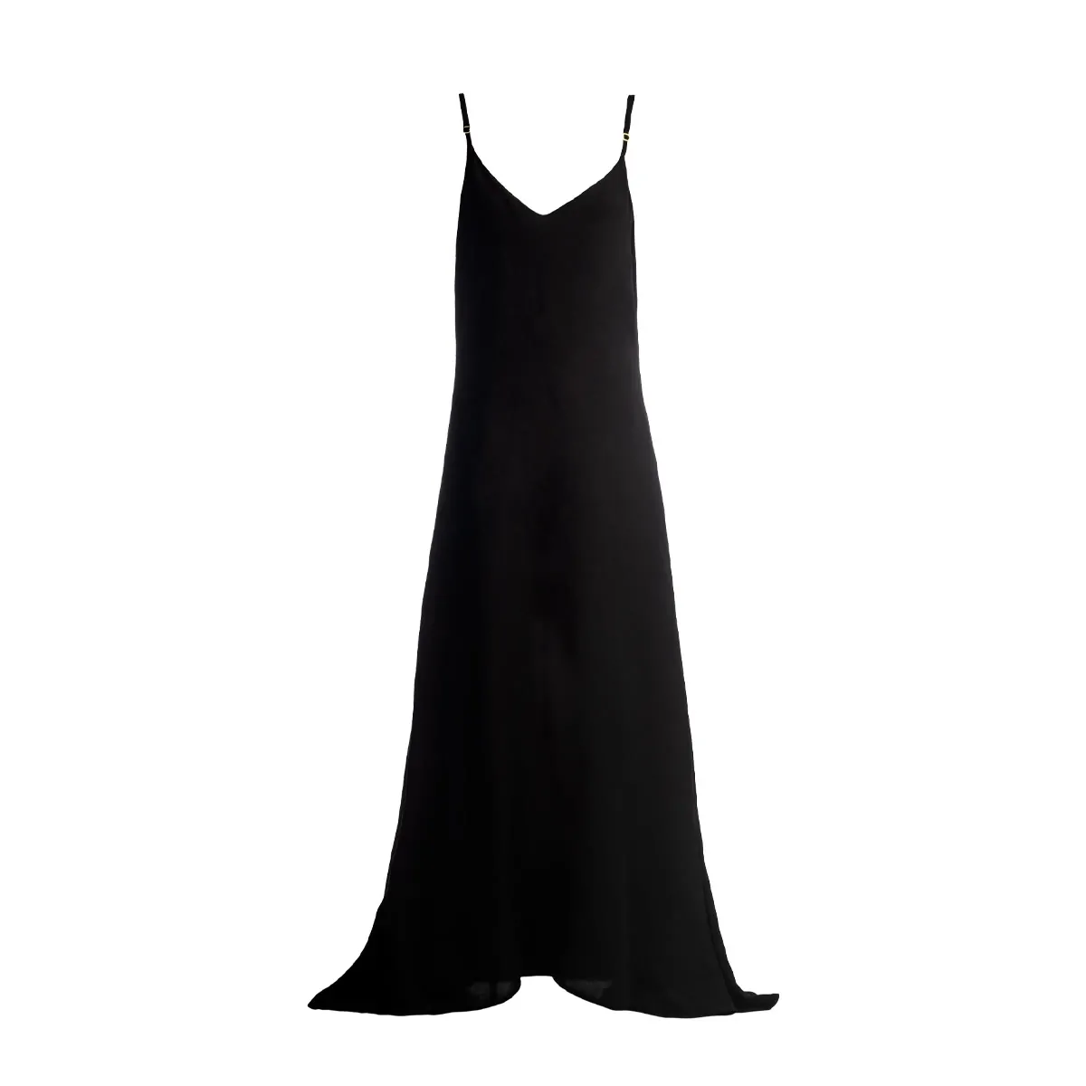 Maxi cloche dress with V-back and adjustable shoulder drawstrings