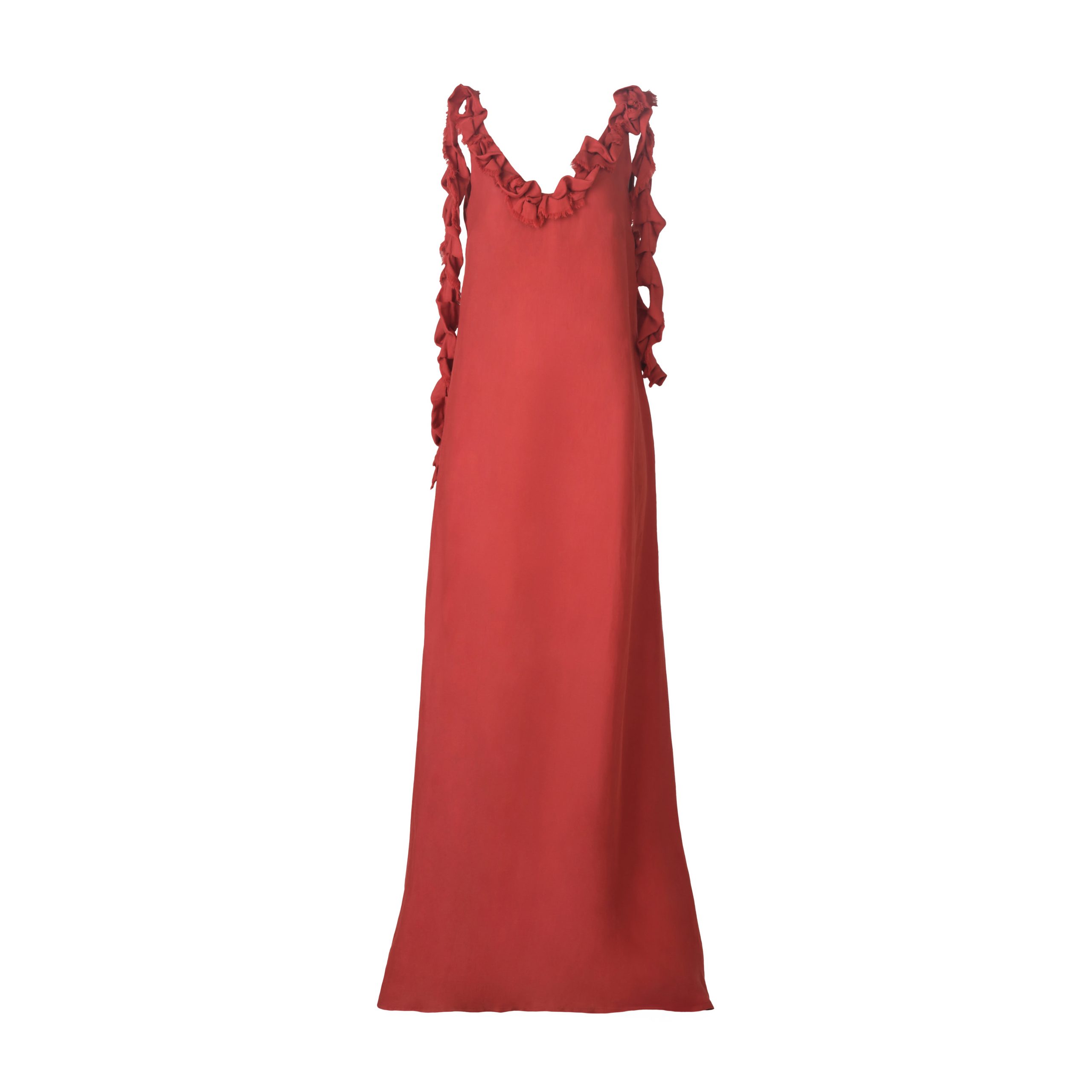 Maxi cloche dress with long twisted shoulder ties