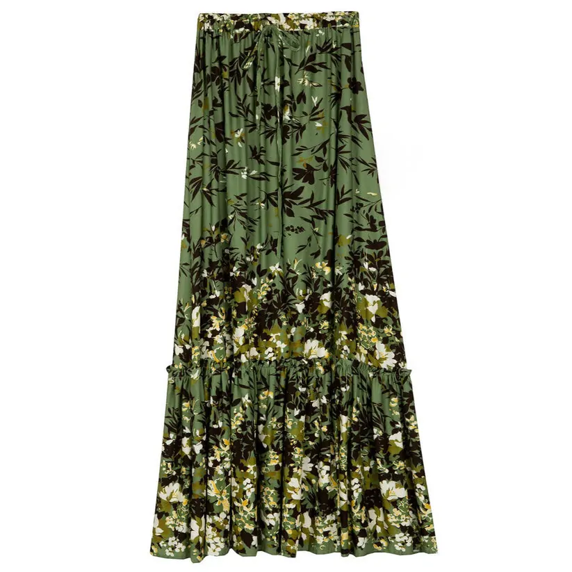 Αέρινη, κυματιστή, γεμάτη ζωντάνια φούστα, που δημιουργεί mood Ριβιέρας και boho πολυτέλειας. Κολακευτικός σχεδιασμός, ανάλαφρο ύφασμα, μπορεί να φορεθεί ψηλά ή χαμηλά για διαφορετικά στυλ. Με πλούσιο όγκο στον ποδόγυρο, θα σας προσφέρει μία άκρως καλοκαιρινή εμφάνιση με διάχυτο θεατράλε ύφος.