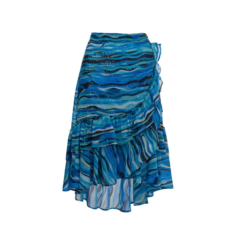 Μία κρουαζέ φούστα, που μπορεί να φορεθεί και ως υπέροχο coverup μετά την παραλία. Φτιαγμένη από αέρινο, ντελικάτο ύφασμα, με διπλό βολάν στο τελειώμά της. Θα αναδειχθεί εξαιρετικά συνδυσμένη με το αντίστοιχο τοπ, ενώ οι χρωματικές αποχρώσεις της φετινής συλλογής θα ταιριάξουν ιδανικά με χρυσά αξεσουάρ.