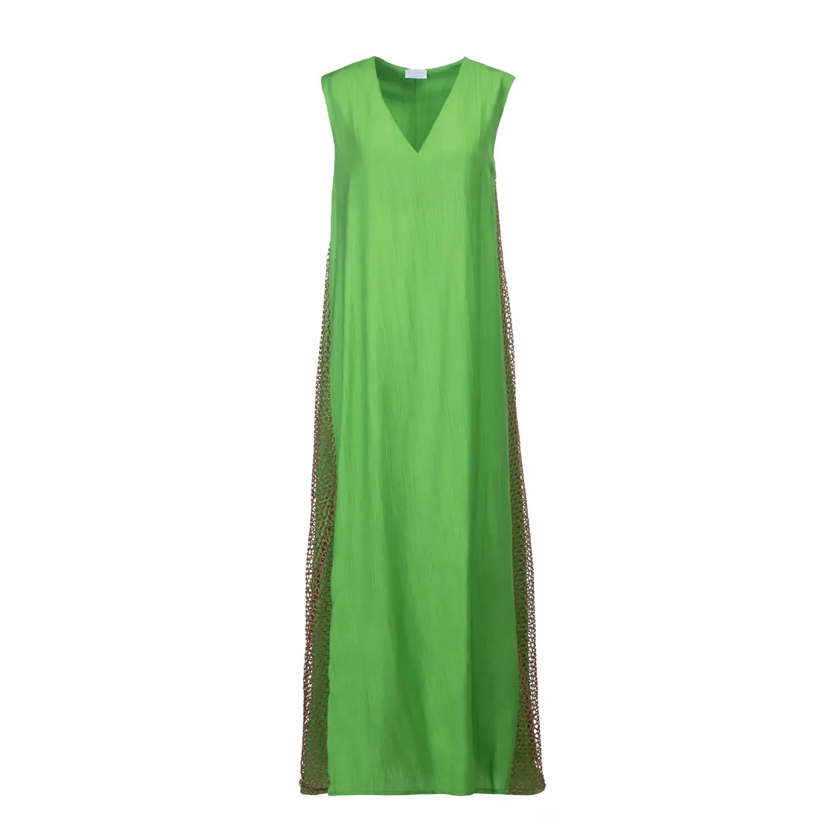 Maxi A-line dress with V neckline and side net embellishments