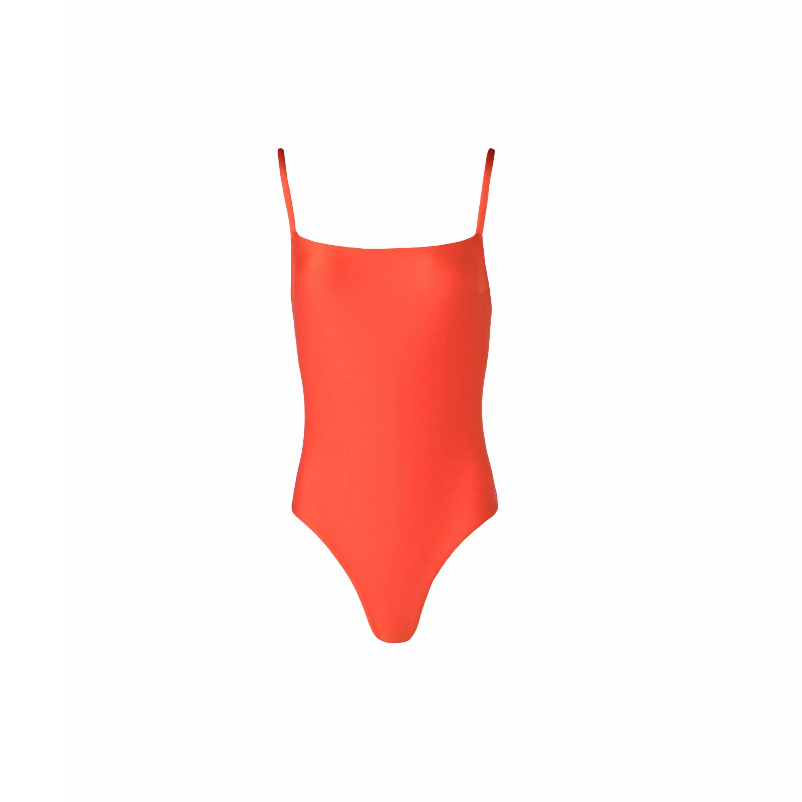 One piece with straight neckline, X back design and removable pads for gentle lift and support