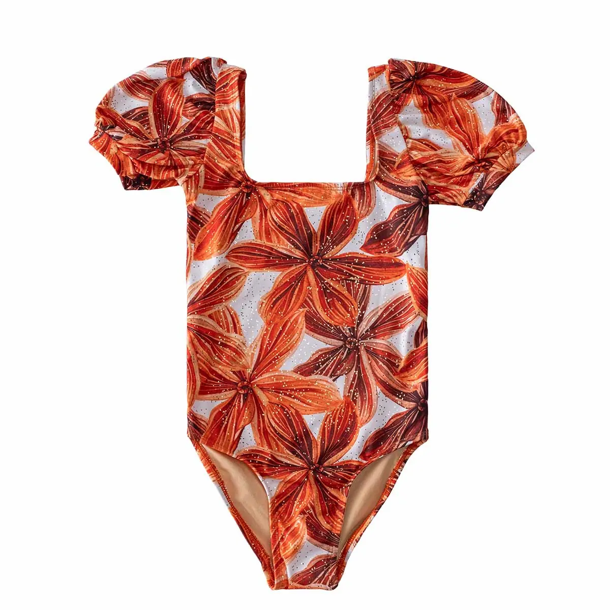 Girls’ one piece with puffed sleeves and square neckline and back