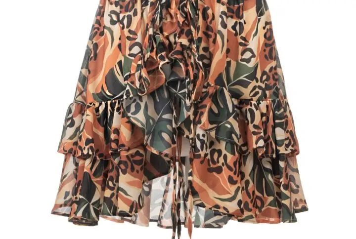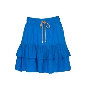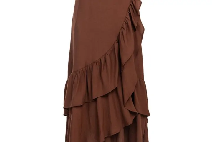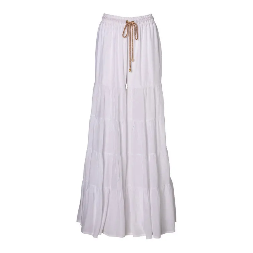 WIDE LEG PANTS WITH TIERED RUFFLES AND WAISTBAND
