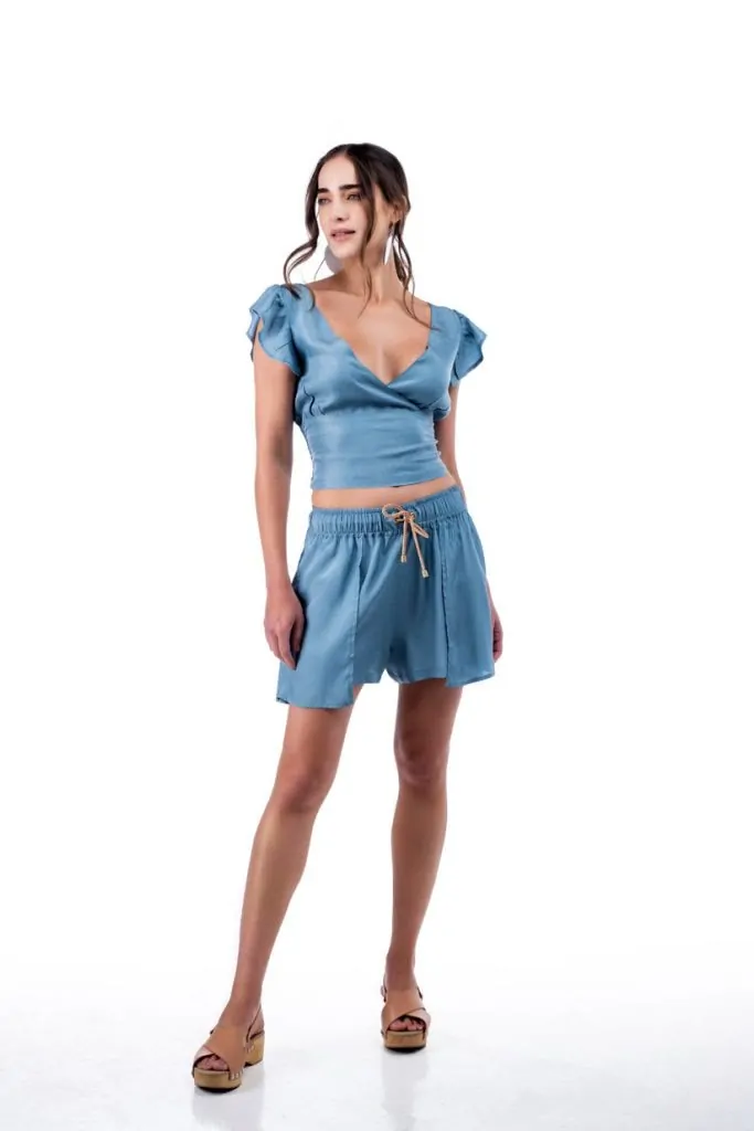• Ελαστική μέση με διακοσμητικό κορδόνι.