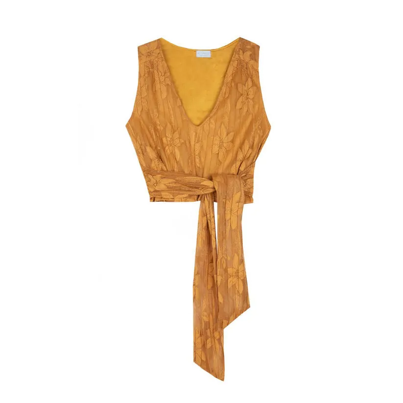 Αυτό το crop top είναι μια πραγματικά smart chic επιλογή. Φτιαγμένο από μια ιδιαίτερη πλισέ δαντέλα και φυσική σατινέ φόδρα, αγκαλιάζει όμορφα το σώμα, ενώ μπορεί να δεθεί μπροστά ή πίσω, δημιουργώντας δύο διαφορετικές εμφανίσεις.