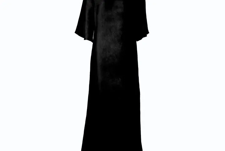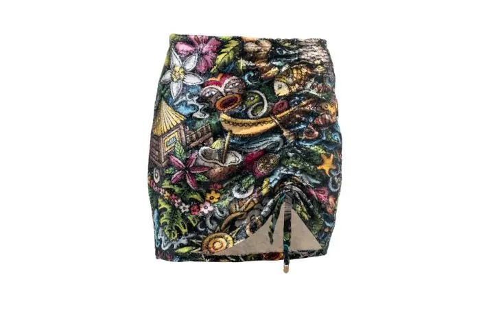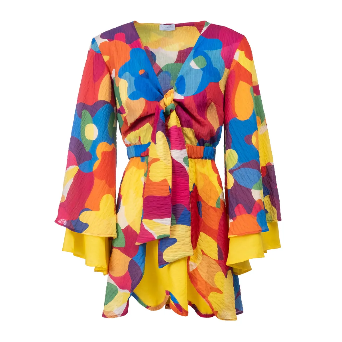 Mini dress with front tie, double bell sleeves and cloche skirt